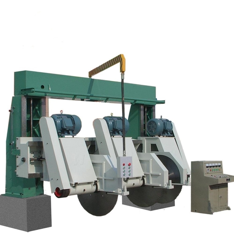 3-blade Curb Stone kerbstone Cutting Machine MLYS-3 installed max. 3pcs-D.1000mm saw blade, is applicable for cutting thick stone slab. It’s usually partnered with multi-Disk stone cutting machine HLTJ-100 for processing granite curb stones.