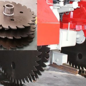 Blades are made of Q460c manganese steel(difficult deformation)+heat treatment,HR up to 52. The cutter heads are made of cemented