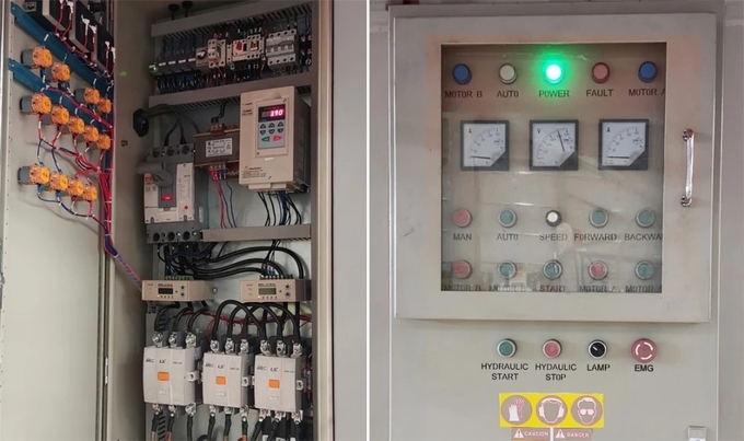 1) The longitudinal cutting relies on the large main column vertical guide rail, the structure of which is simple and strong,