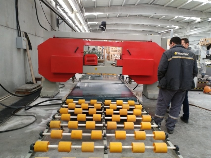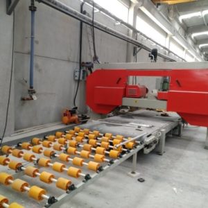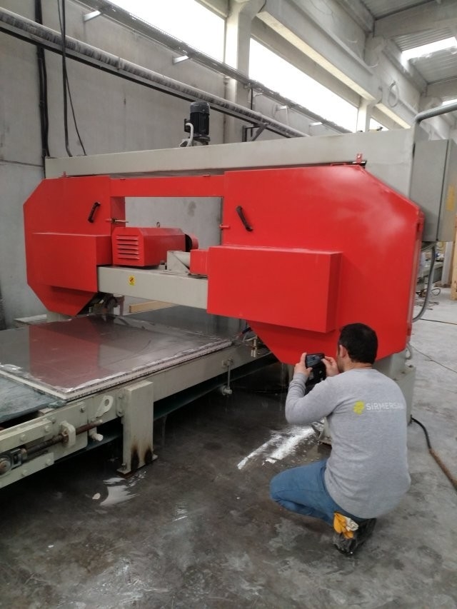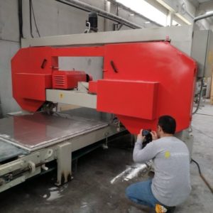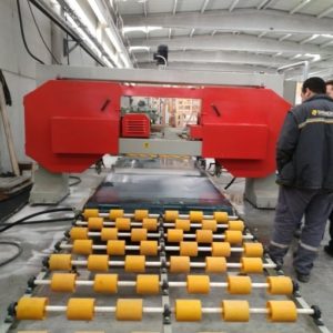 Stone BandSaw Cutting Machine is for horizontal splitting the marble or granite slab. To put the slab on the table and use the tool of Belt blade with diamond tip to split the slab. It is a must machine for working on super thin stone panel.