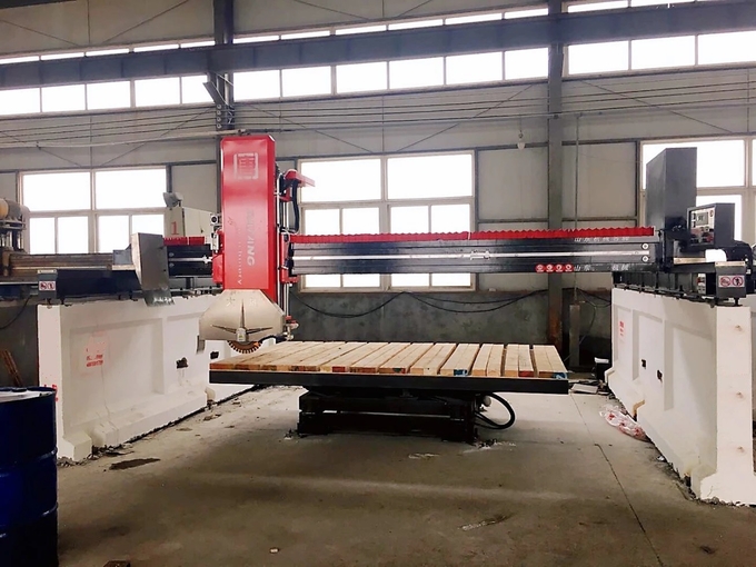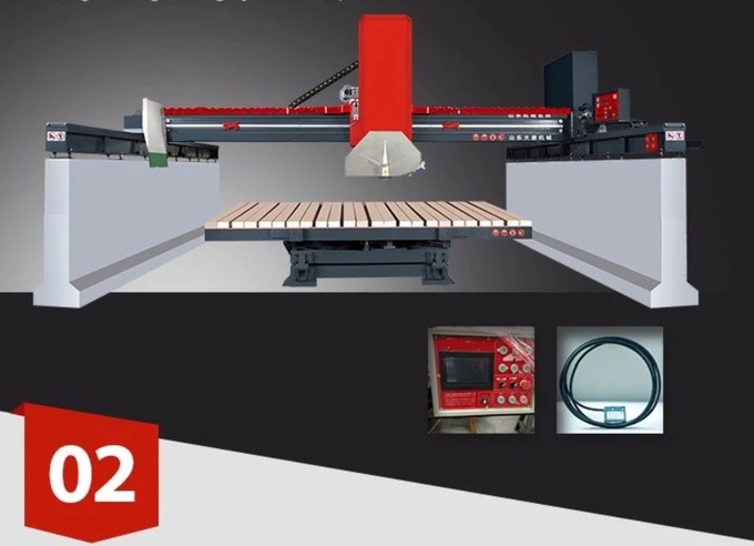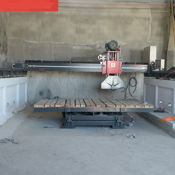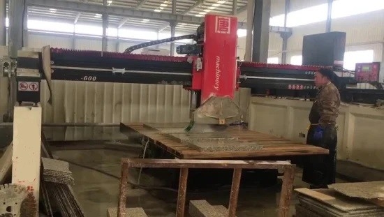 Table Stone Cutting Machine 450/600/700/800 bridge type infrared stone cutter is controlled by computer and can work automatically. Machine parts are made of high quality steel. Four guide pillars are used for lifting, The electronic parts are assembled with advanced imported components. The machine adopt PLC system, VFD for speed regulation, infrared calibration instrument, touch operating system. Computer automatic control ensures cutting accuracy. The machine is with high intelligence, high stability, high efficiency, and easy operation. It is suitable for cutting high value, large size granite and marble slabs.