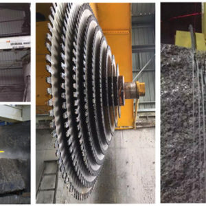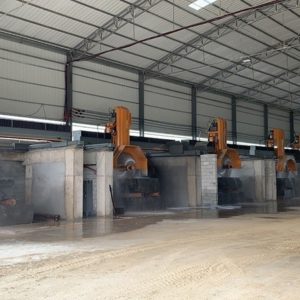 MULTI-BLADES DOUBLE HYDRAULIC BLOCK CUTTER BTC-2200/2500/2800/3000 uses inverter to control left-right feeding adjusts the speed according to the stone material. It uses hydraulic lifting system(screw lifting system*optioal), forward-backward slicing uses high-precision screw nut driving, automatic slicing, main spare parts adopt imported good-quality materials. The block can be placed in the ground directly to save worktable and its maintenance costs. Thus the whole machine is featured as high cutting efficiency, high slicing precision, flatness of plate after cutting, high stability, easy-operating to suit specially cutting granite and marble block with high value.