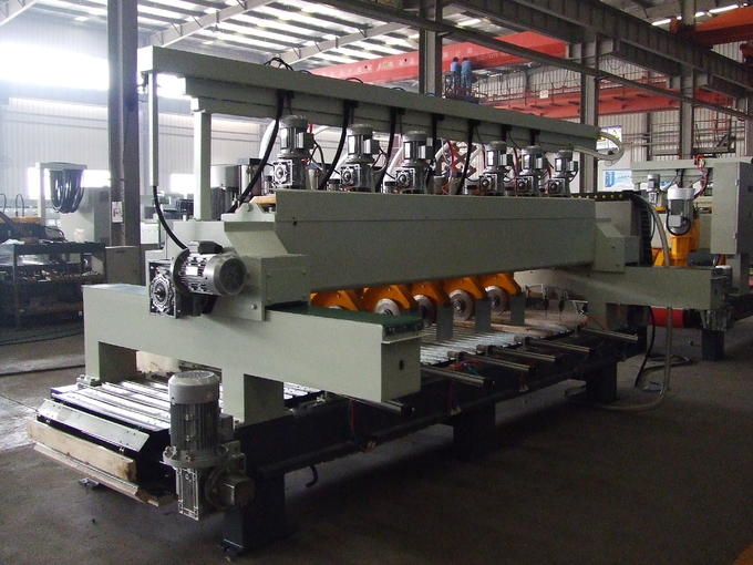 Stone cross cutting machine is especially for cutting stone slabs or strips into sized tiles, such as 40x40cm, 50x50cm, 60x60cm, 80x80cm, 100cmx100cm etc. With 3 blades straight cutting blades, and various number of cross cutting blades like 5 or 6 or 7(popular).