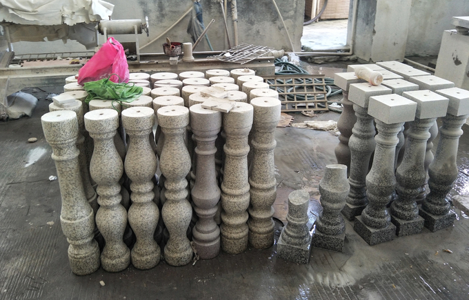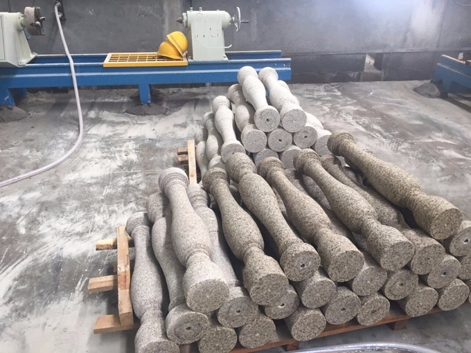 four blocks can be processed at one time. it can cut all kind of solid of revolutions such as systloidal baluster, pellet, stylobate, cap and column and so on. As a automatic machine, it has already avoided the defects of manal process, one worker can operate many set of machines after adjusting the process parameter.