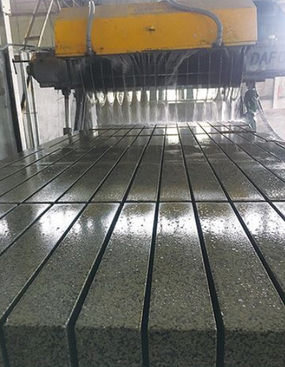 4. The full-automatic edge cutting machine cuts 3 cm slabs with an output of 80m2/h;covers an area of 16mm*3m.