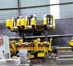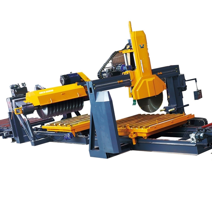 2. Use timing belt and roller drive to convey the slabs for cutting . The limit switch is used to sense the position of the slabs when the slab is cut, and six cylinders are used for positioning to perform the slab cutting .