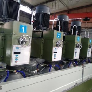 2. 2~8 swaying type diamond grinding plates, 22 kw driven motor for per head, feed-in of the blades are controlled automatically by speed reducer motor.