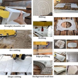 This machine is the new generation multi-function processing machine which is associated to be designed and manufactured between OMC and research institute of famous college. With pattern operation and advanced control system and synchronous CNC control system, the machine can be easily operated easily without knowing complicated CNC knowledge.This machine can be used to realize some advanced functions like : cutting line, chamfering, drilling, profiling, 3D profiling, and edge profiling, which can be used to small processing factory and countertop shops.