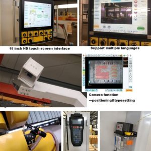1. Powerful 7.5 kW motor with adjustable speed. 2. Full graphic operation with photo typesetting. What you see is what you will get. 3. Support cutting, milling, edge grinding, pofling and laser fixed pointing drawing. 4. High processing accuracy by using precise guide rail and rack.