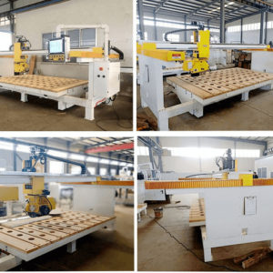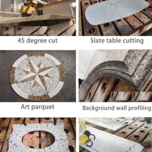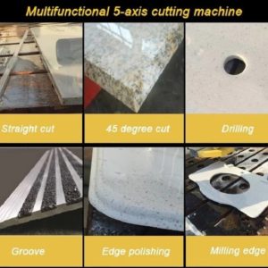 CNC Bridge Saw Machine is the new generation multi-function stone processing machine which is jointly developed by our company and famous universities and research institutes.CNC control system synchronized with Italian technology system,pure touch screen operation which can be easily operated without knowing complicated CNC knowledge. This machine can realize many advanced functions:straight and arc chamfering, cutting, drilling, milling,profiling,3D profiling and edge profiling,which are widely used by small processing factory,kitchen countertop and home decoration shops. This CNC 5axis stone cutting machine is designed to realize X-Y-Z-A-B 5 axis linkage with more wider utilization.It adopts high quality servo motors and other electrical components,high precision linear guideway,compact structure and small area coverage.