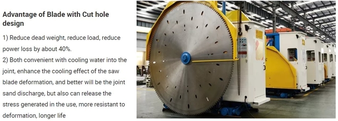 4.With the super giant saw blades, it can be used for the processing of ultra-large rocks and blocks to improve out turn percentage of the mine and make full use of the mineral resource.
