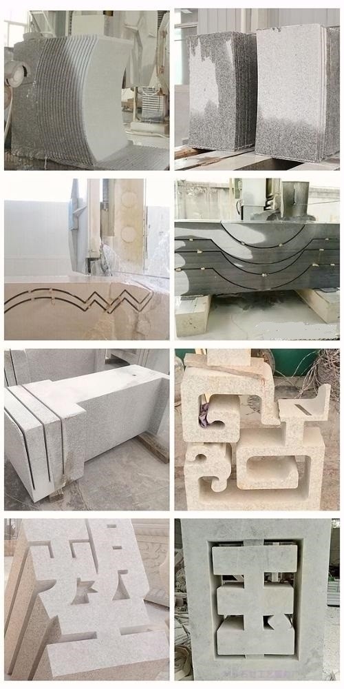 Description: CNC diamond wire saw cutting machine adopts CNC system and four-spindle linkage, which can process all kinds of stones and any kind of complicated shape like circular,stone slab, roman column, numeral, letter, Chinese characters with different specifications. This machine is highly praised by our customers for its good quality with high processing precision.