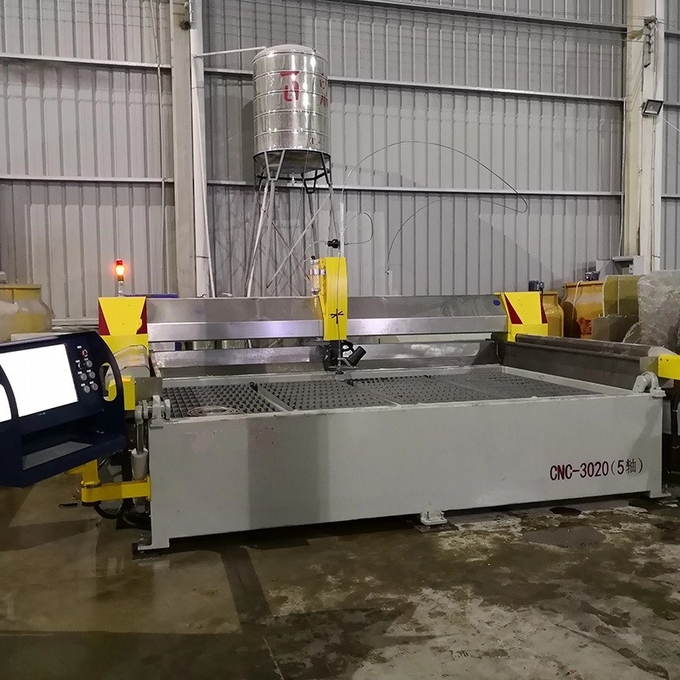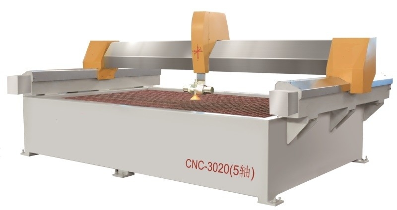 This 5 Axis Water Jet Cutting Machine adopt AB axis design,realized 5 axis(X,Y,Z,A,B)linkage,concise but not simple,waterproof and sandproof more tight,electrical wiring more skillful,all spare parts are processed with the function of high accuracy and high speed cutting,no wait for turning, no dots,adopt impoted high-end brand serve motor and servo driver,make the control accuracy higher,With the angle of cutting,solve the matter of the quality of cutting under uneven affects the product’s piece , without grinding can be directly assembled on the glue in stone, reducing production cost, reduce labor costs,can process complicated product,like the circular arc cutting,this machine with reasonable design,strength evenly, effiectively improve the machine’s life and reliability.