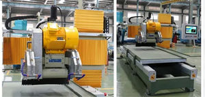 The machine is controled by system of 2D or 3D heterotype stone cutting, special for processing and designing heterotype stone, which enhance the working efficiency of 2D or 3D line cutting.Through the Man-Machine interface, enter the figure, after set the cutting point and finish manual or automatically. It’s featured by steady processing, fine surface and unitive shape. Expect for processing 2D or 3D line. It also can process arc stone line, column, chapiter, stylobate and vase etc. Double baldes design, which is effort halved, rdsult doubled.