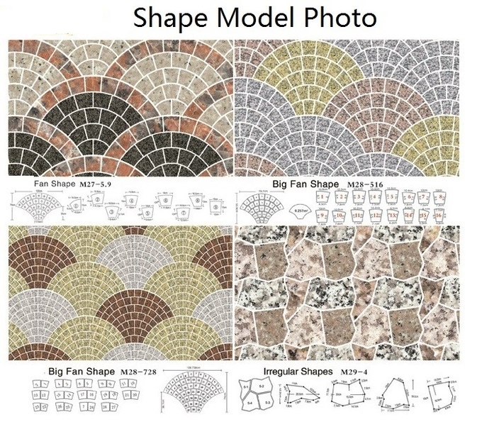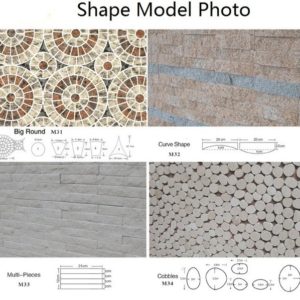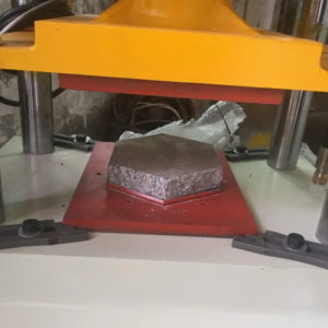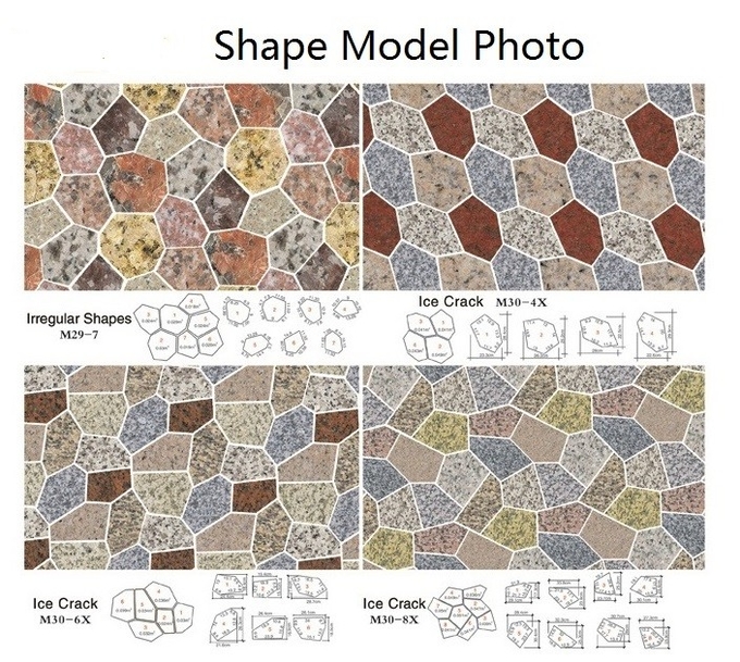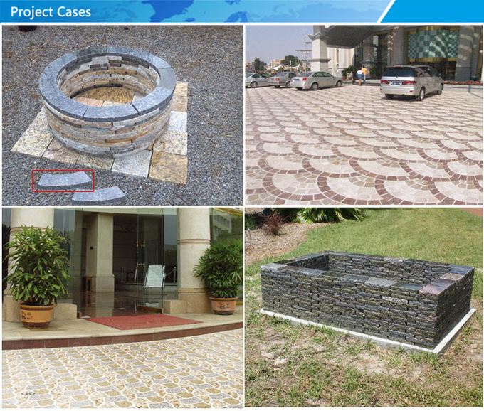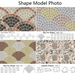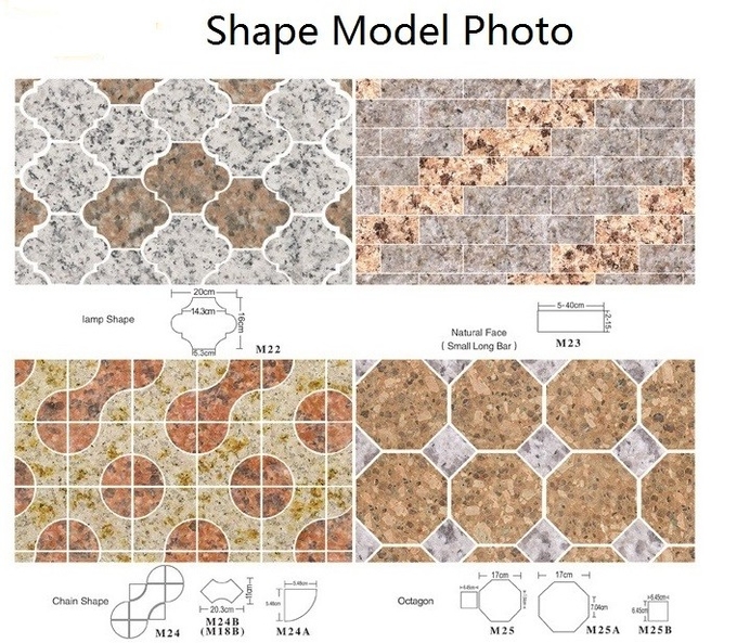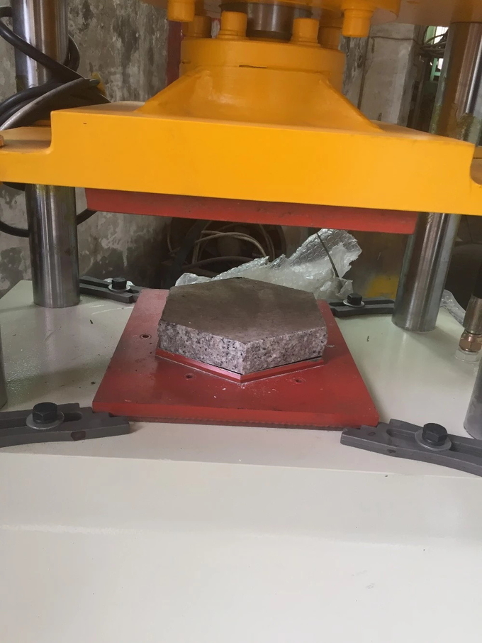 The hydraulic stamping machine is specially designed for changing the leftovers of slabs or tiles into amazing paving stones. It could stamp more than 40 different shapes by different dies with hydraulic system inside. And we could make special designs according to your requirements. This machine has very compact structure. It is easily operated and maintained. It has the output around 100-120m² per day. The standard splitting power is 20 ton, maximum processing stone size is 30cm×30cm×5cm(L*W*H). We can adjust the hydraulic system with 40tons splitting force, then it can process the slabs up to 8cm in thickness. There are 2 types: CP90 (A) and CP90 (B). CP90 (A) has two functions—- stamping and cutting, while CP90 (B) has one more special device to split the slabs into natural face strip in rapid succession.