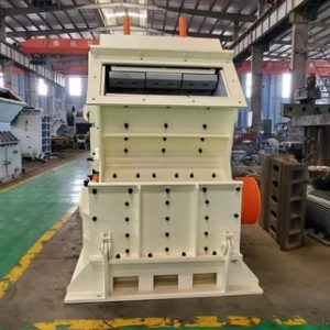 Stone impact crusher, Max. feeding size is 300 mm, capacity is 50-90 t/h, motor powder is 55 kw. Impact crusher is an important equipment for secondary crushing. It is widely used in mining, transportation, construction and chemical industry. PF series impact crusher can crushing many different kinds of materials strength less than 360 Mpa, such as limestone, gypsum, concrete, etc. When the crusher works, the motor drives the rotor to rotate with high speed, on the rotor where installed the hammers. When the materials get into the area which the hammers effect, under the impact function of the hammer at a high speed, the materials are thrown to the impact device above the rotor continuously. And then the materials are rebounded from the impact liner to the area where the hammers effects for being recrushed. The materials from large to small all to be crushed at the impact chamber repeatedly.