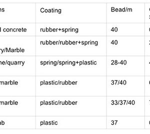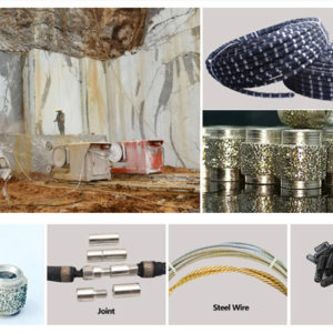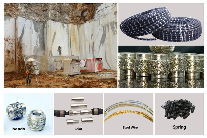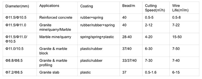 Advantages of rubber wire used in granite & marble quarrying. The rubber and cable sticking together tightly makes good bonding and this can be more strikes during the work. The rubber has good temperature resistance, and it can be used when water is not enough. Strong flexibility can reduce the cut-in-one-side problem, and even can be used for smaller curvature radius. Normally wire saw machines with 37-75 kw are used in granite & marble quarrying, according to the size of cutting area, water supply can be controlled with 25-50 L/min.