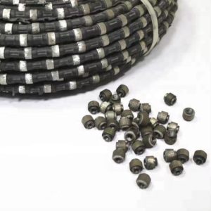 The beads equipped with a diamond mantle segment carry out the actual cutting work. The base of these beads is a cobalt alloy,which has already proved its performance on our segments for diamond circular saws. This base has been modified in order to achieve optimum free cutting and long life characteristics for the wire saw. Embedded into this metal alloy is a diamond quality, which was chosen specifically for the use on diamond wire due to its extreme fractural strength and high quality crystal structure.