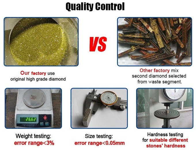 | Size | Specialized in making any sizes of diamond segment, we can make many different kinds of quality and sizes to fit your market and your stone |